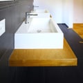 Wasser und Holz ein Gegenteil? Nein, eine Harmonie! Das Bad gehört zu den meist benutzten Räumen im Wohnraum. Ein Raum für Entspannung und Wohlbefinden. Warme Farben, eine vertraute Haptik vereint in einem nachhaltigen Material bringen diese Gefühle auch in Ihr Bad. Die Kombination mit zeitgemässen Formen lassen Holz und Keramik miteinander vereinen.